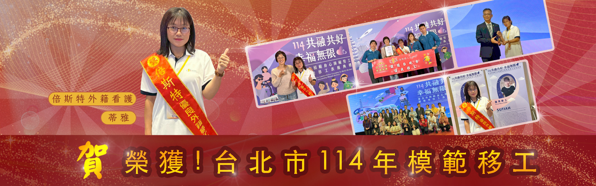 城市的另一道溫暖力量,也來自遠道而來的手。本次典禮同步表揚15位優秀移工(含3位鼓勵獎),他們在照護及家庭支持等重要領域付出心力,離鄉背井卻在臺北建立了信任、陪伴與連結,他們的存在,是城市運轉中不可或缺的一部分。