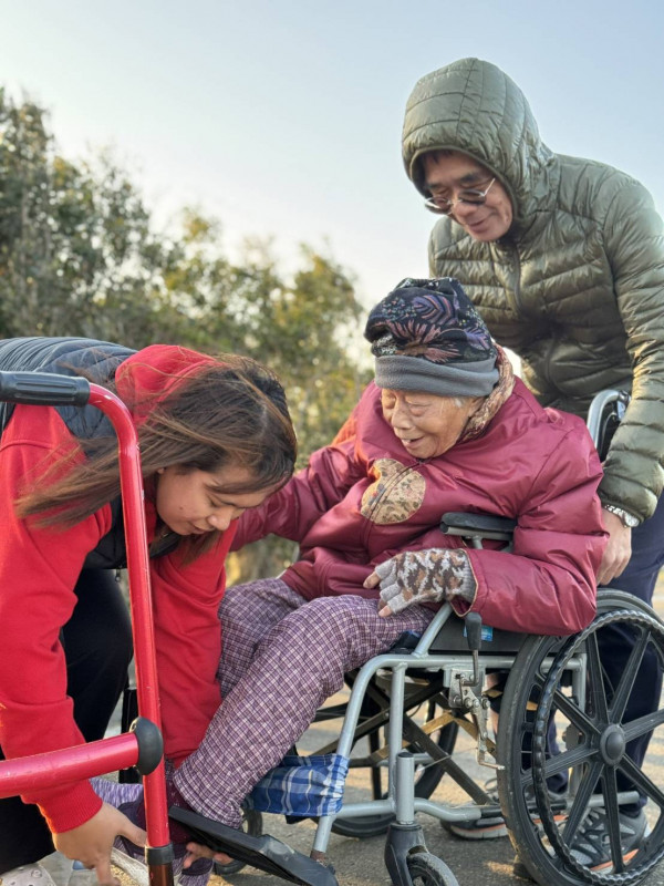 在日常照護上,阿希對安全特別重視。無論是洗澡、餵食、行走復健,甚至只是短暫離開身邊,她都會事先確認阿嬤安全無虞,讓我們能夠放心地將阿嬤交給她照顧。