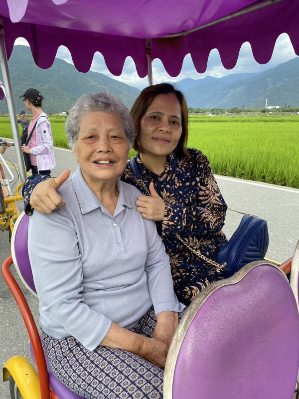 大家好我叫迪迪,我的老闆叫陳怡儒,阿嬤她很開朗只是因為生病所以不舒服,我會努力把阿嬤照顧好,讓阿嬤身體越來越好每天都可以開心到處走走,對於老闆的稱讚我很不好意思,這些是我應該做的。